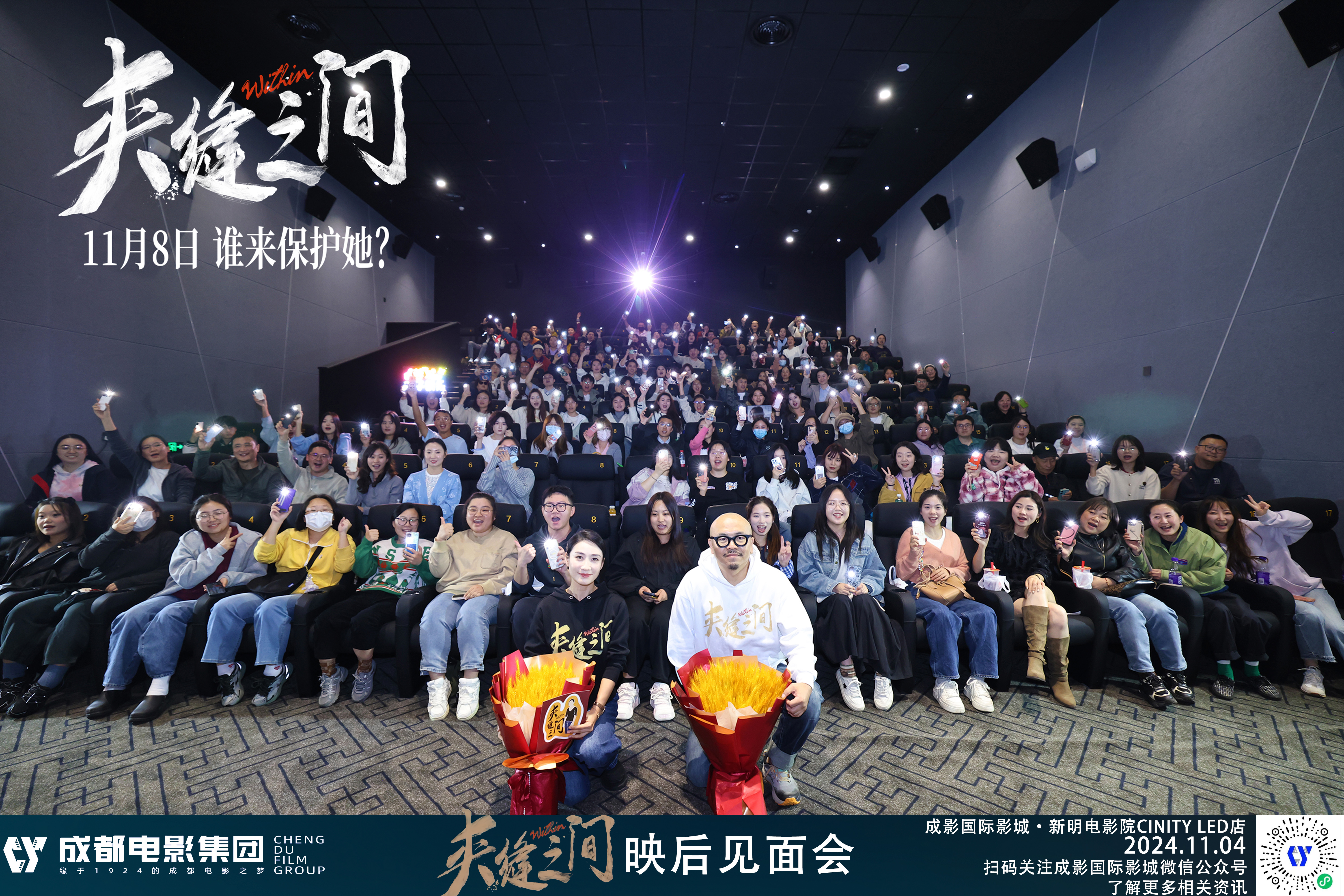 2024年11月4日晚,《夾縫之間》劇組主創(chuàng)導(dǎo)演/編劇:郭大路 、監(jiān)制/制片人、主演:陶昕然一行到成影新明電影院進(jìn)行了映后路演活動...